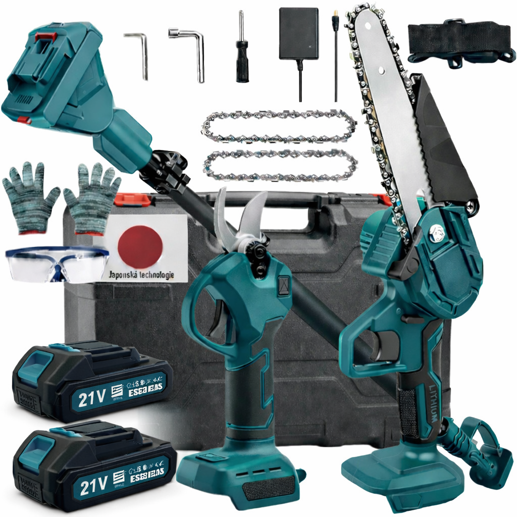 Chcete mít svou zahradu dokonale upravenou bez zbytečné námahy? Pak je naše AKU sada 3v1 přesně to, co potřebujete! Tato výkonná sada zahradního nářadí kombinuje AKU pilku s teleskopickou tyčí, což vám umožní pracovat efektivně jak u země, tak i ve výškách.