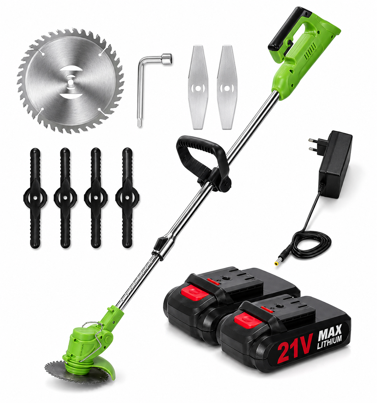 Aku vyžínač / křovinořez / sekačka 3v1 21V + 2× baterie