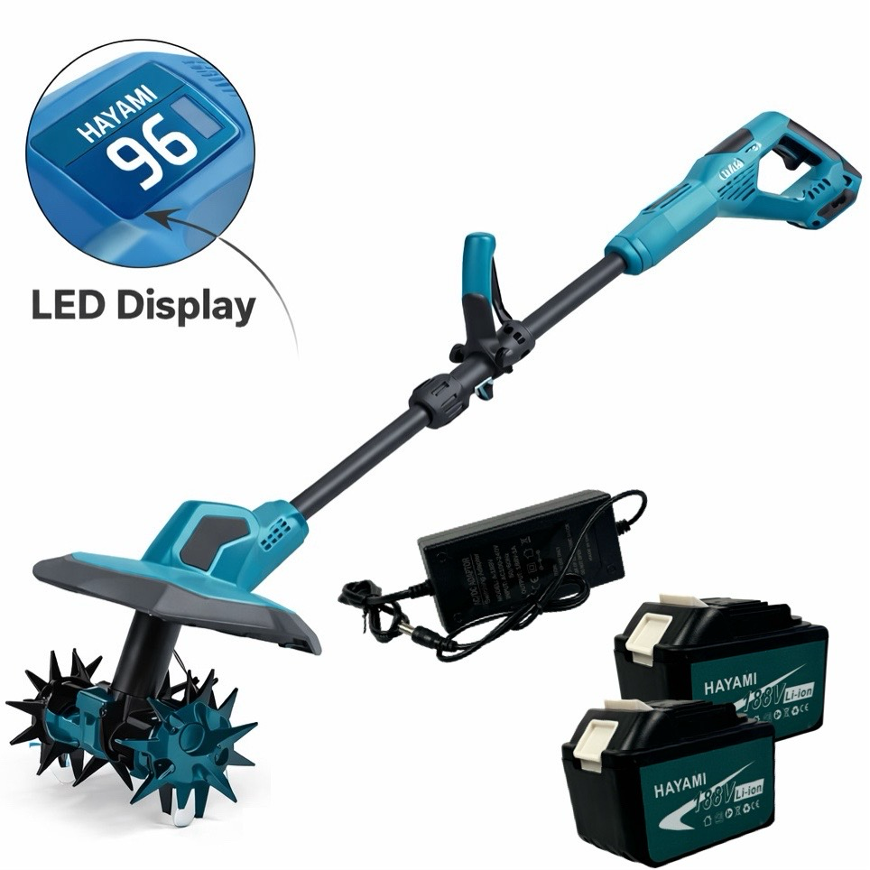 Klíčová slova: aku okopávačka, akumulátorový kultivátor, rotační plečka, kypření půdy, pletí záhonů, HAYAMI, 188 W, digitální displej, dvě baterie, dárek pro seniory