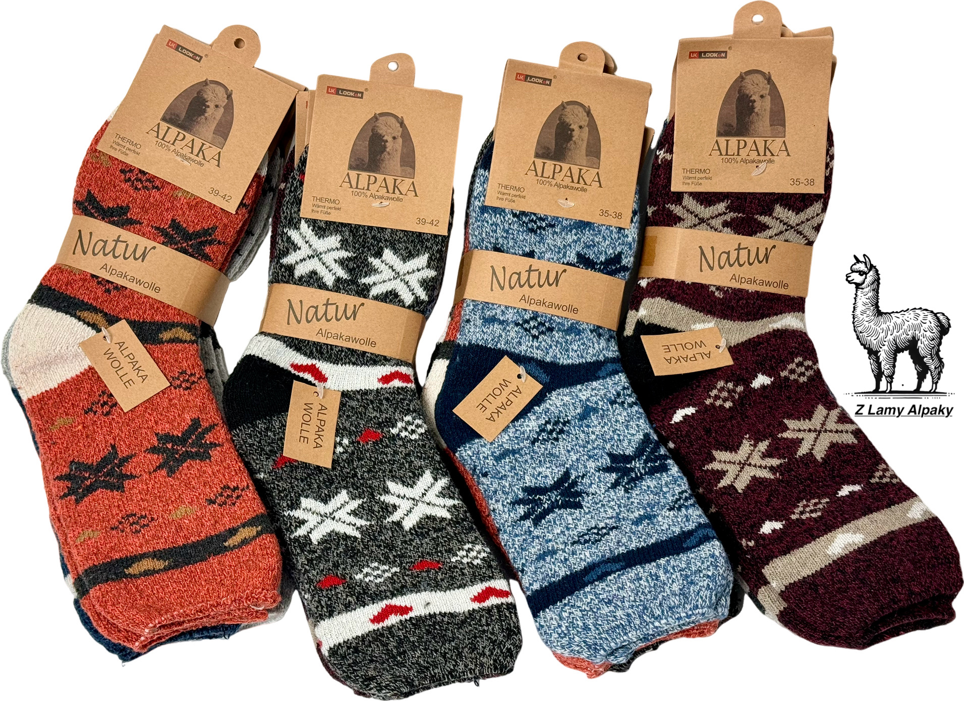 Dámské termo ponožky z alpaka vlny – norský vločkový vzor pro zimní pohodlí. Objevte hřejivé dámské ponožky z prémiové alpaka vlny s tradičním norským vzorem vloček. Ideální na chladné zimní večery i jako stylový vánoční dárek. Zaručené teplo a pohodlí!