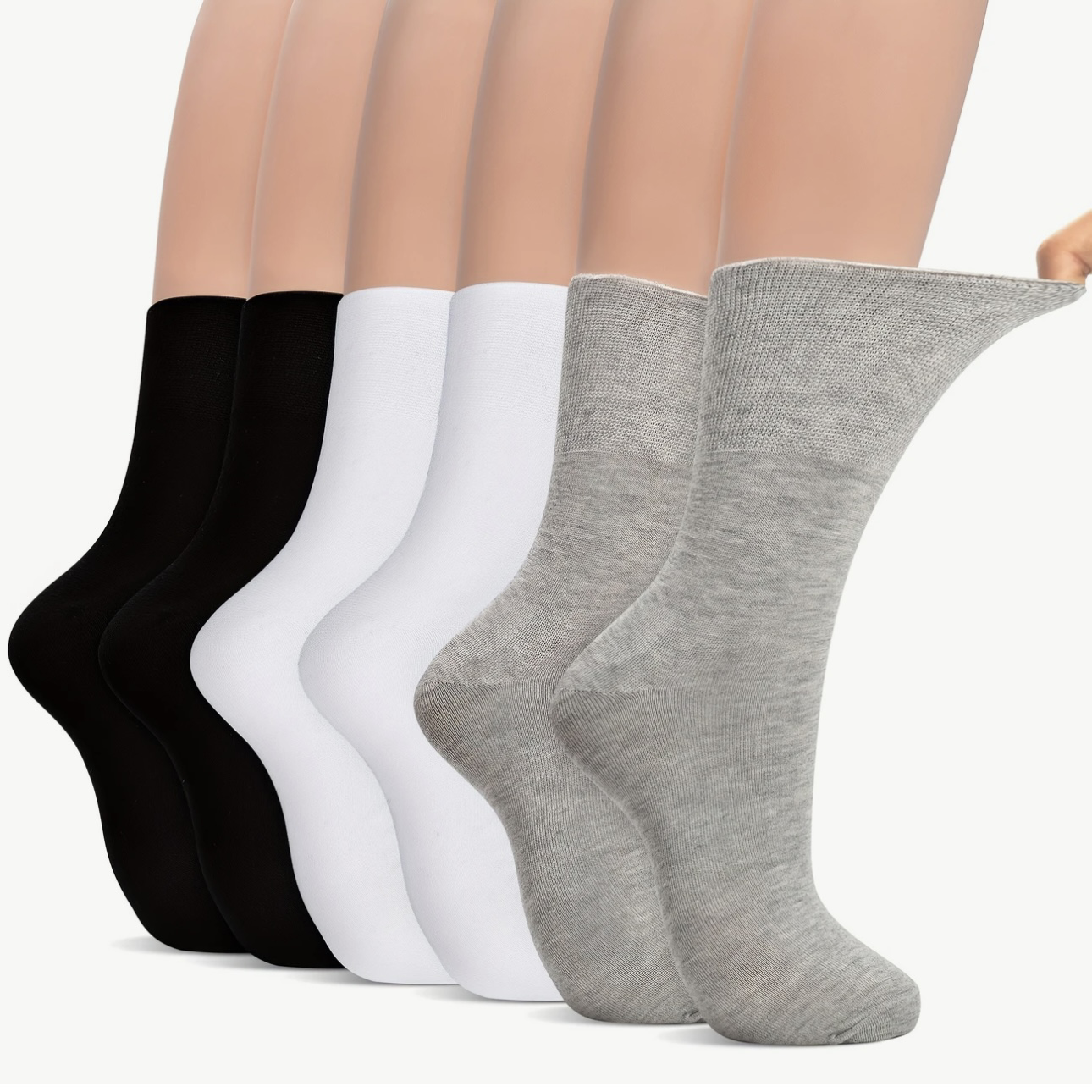 Dámské zdravotní ponožky NATURE jsou speciálně navrženy pro osoby s citlivými chodidly, diabetiky a pro ty, kteří trpí otoky dolních končetin. Díky unikátní kombinaci materiálů a promyšlené konstrukci poskytují maximální pohodlí, dostatečnou prodyšnost a přizpůsobivost noze bez jakéhokoliv tlaku či nepříjemného stahování.