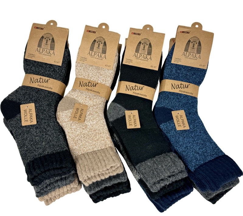 Užijte si teplo a pohodlí s pánskými ponožkami z alpačí vlny! Měkké, hřejivé a prodyšné ponožky z přírodní alpačí vlny jsou ideální pro chladné dny. Bez stahovací gumy pro maximální komfort a volnou cirkulaci krve. Perfektní volba pro citlivou pokožku.