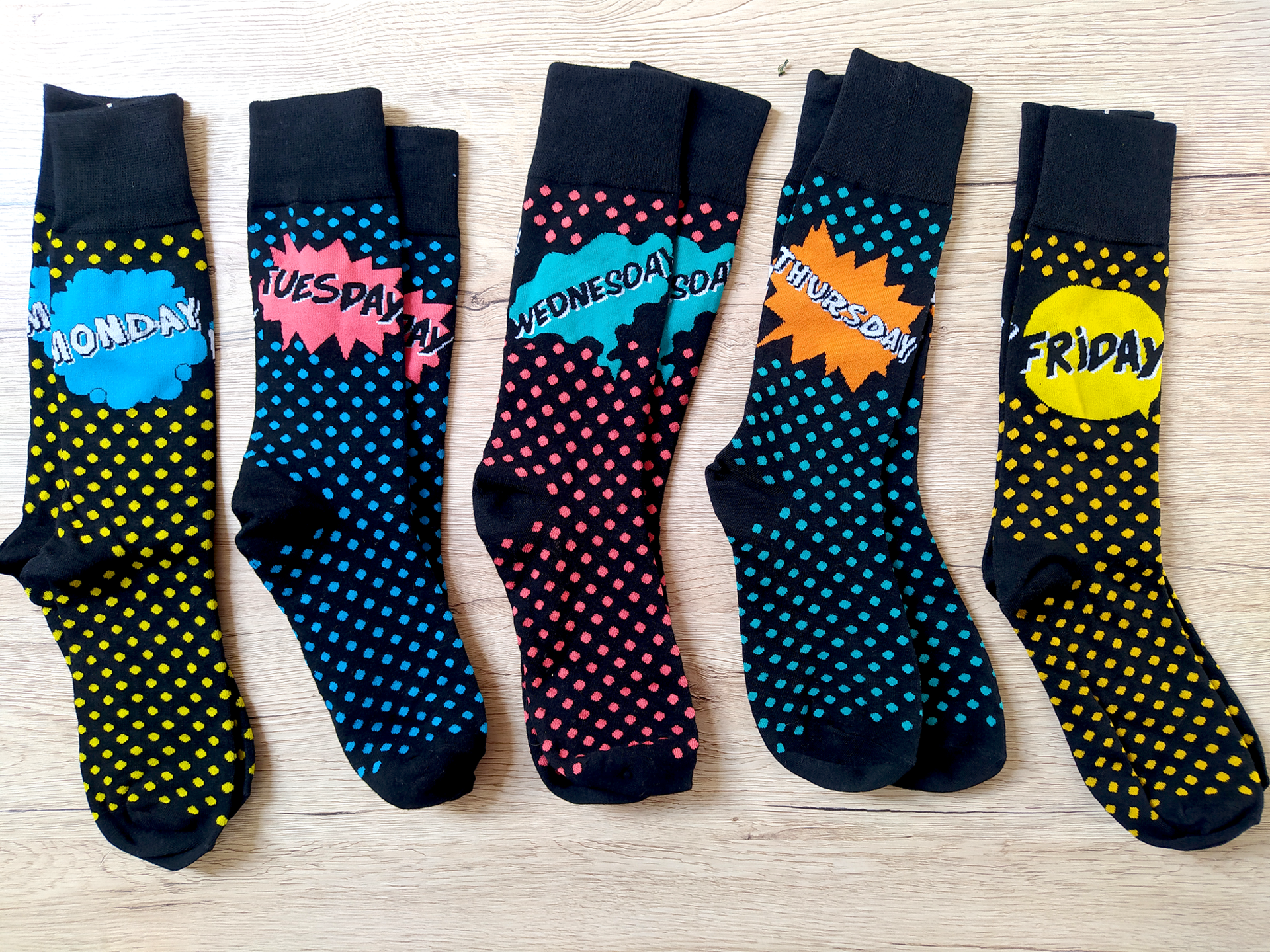 Pánské ponožky na každý den v týdnu doladí každý outfit. Nejen, že jsou veselé a vtipné, ale díky tmavému provedení je vezmete opravdu kamkoliv. Hodí se vám jak do práce, tak pro běžné nošení. A to nejlepší na tom je, že máte přesně předepsáno, v jaký den v týdnu si máte vzít které. Na každý den v týdnu máte jeden pár, a nemusíte si lámat hlavu s výběrem.